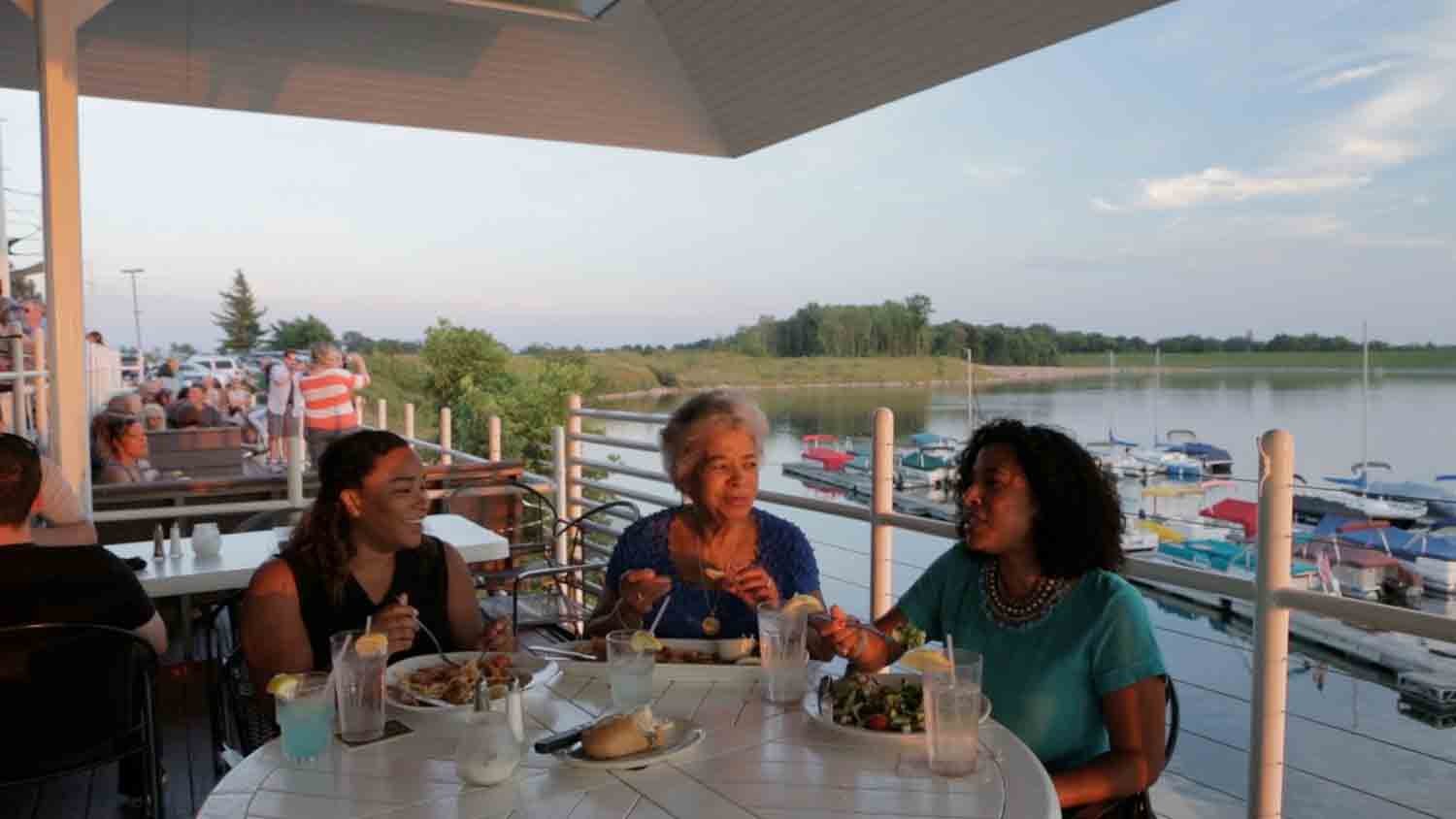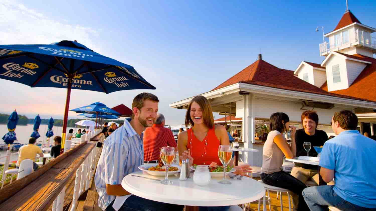 Located on the water at Eagle Creek Reservoir. Wonderful lakeside ambiance with inside and outside dining and lounge facilities. Fresh seafood specialties, USDA prime steaks, pasta. Sunday brunch. Live jazz nightly and Sat./Sun. afternoon. Across from Eagle Creek Airport--drive in, fly in or boat in. Banquet private facilities available to accommodate up to 150 people.