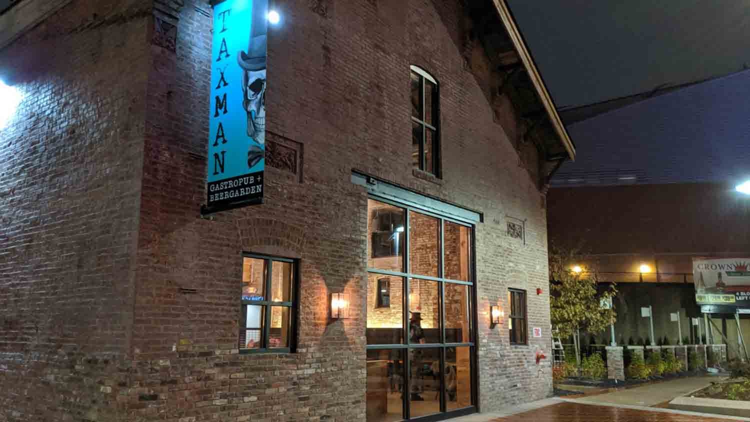 Located in downtown Indianapolis on Delaware Street, Taxman CityWay occupies the historic livery building constructed in the 1800s. The original building structure has been preserved, creating a unique dining experience. The restaurant features a 21+ bar area, family-friendly dining, an outdoor (dog-friendly) patio, lofted 2nd floor dining area suitable for private events of up to 40 people and a conference room suitable for up to 16 people.