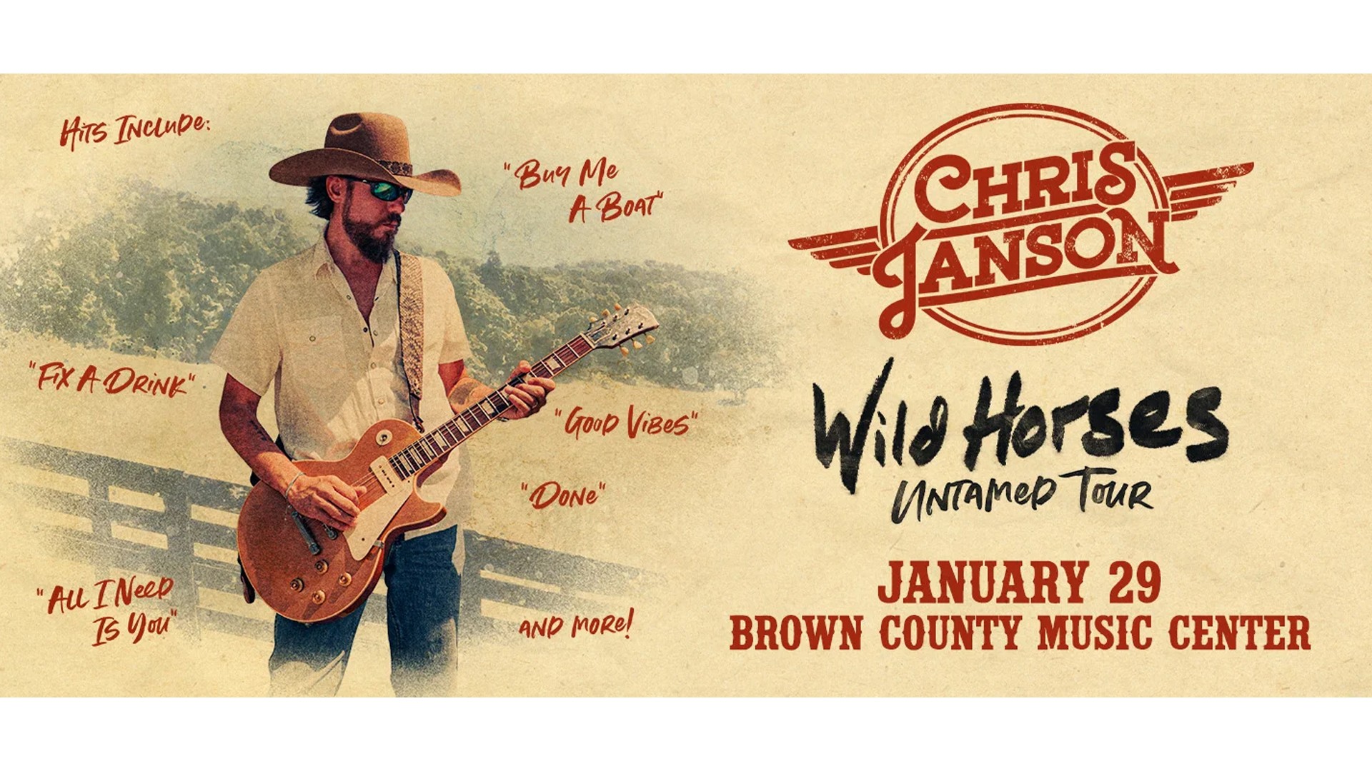Chris Janson is the real deal--an accomplished, award-winning artist, producer, and songwriter. Janson’s live shows and songwriting set him on a path of great success. The Grand Ole Opry member has amassed billions of global streams, Gold and Multi-Platinum awards, more than 10M in sales as a solo artist, and excess of 15M in sales combined with hits recorded by other notable artists such as Tim McGraw “Truck Yeah”, LoCash “How I’ll Always Be”, Hank Williams Jr. “Love This Life”, and more.